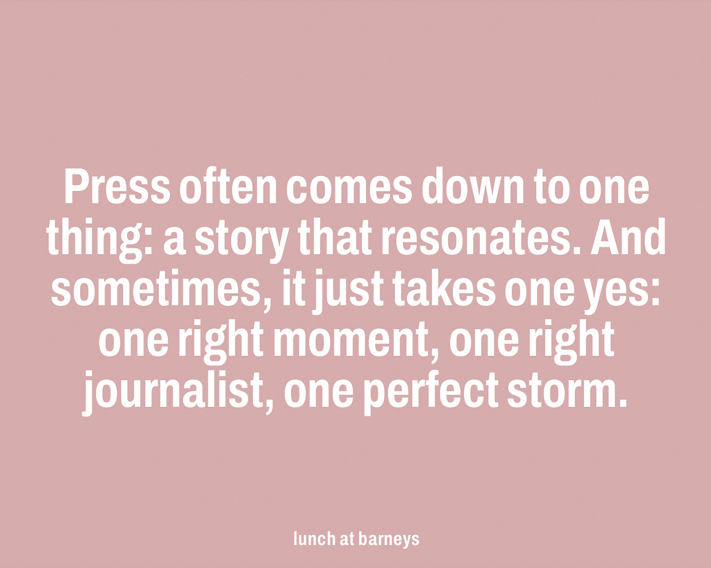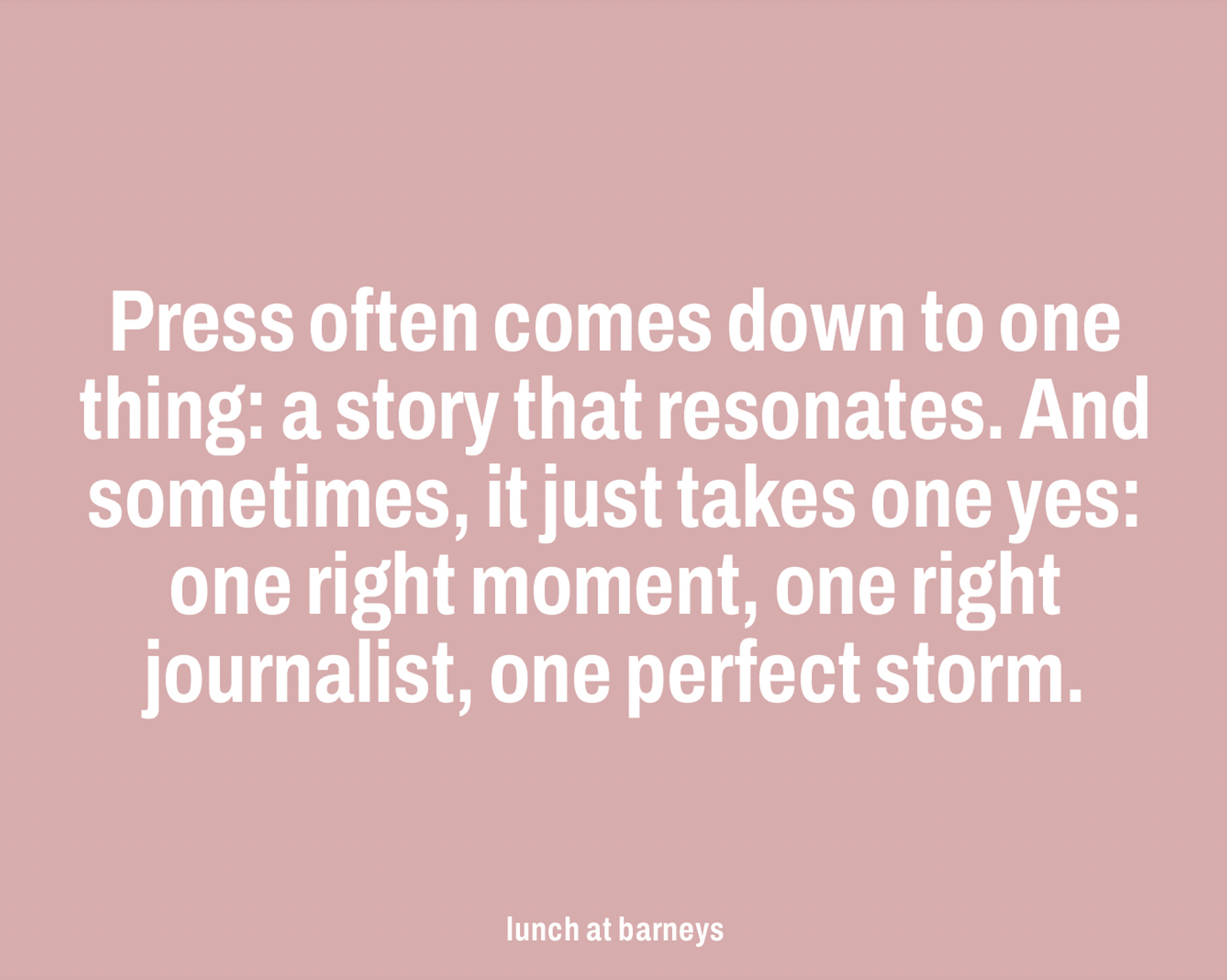 I always say, it takes one yes. One right moment, one right journalist, one perfect storm when everything just works together.