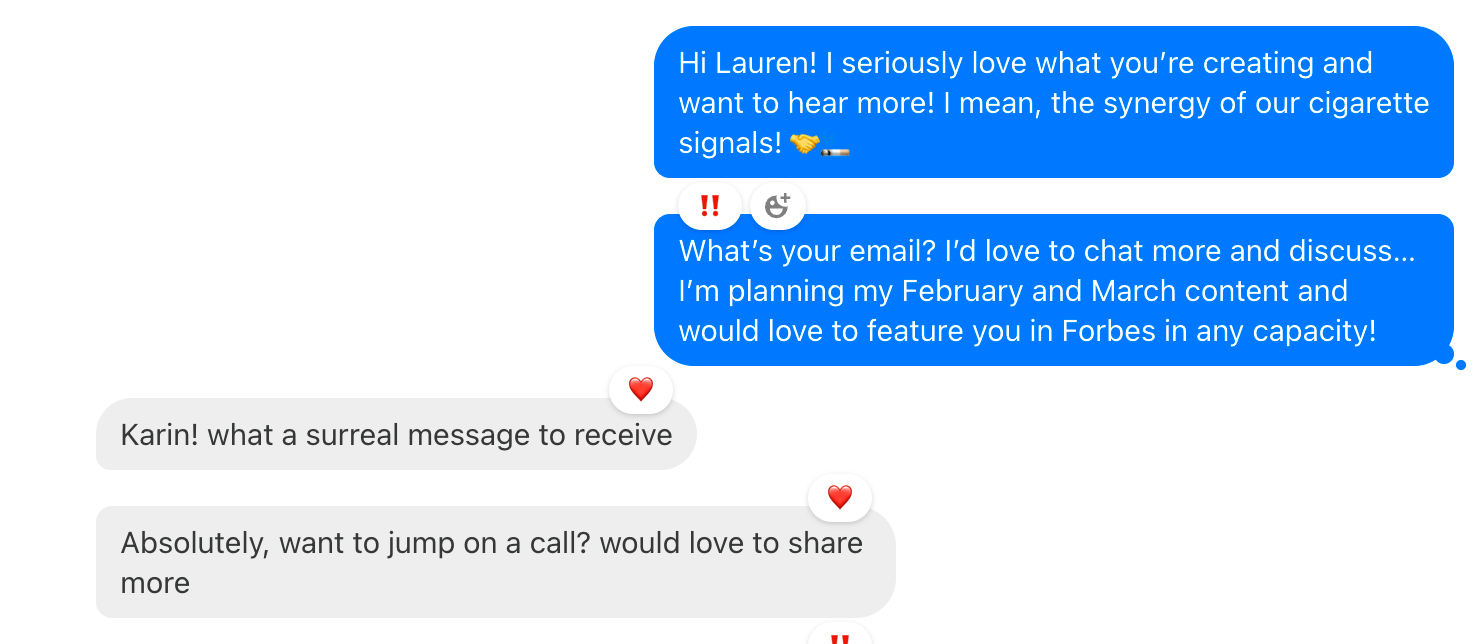 “I thought this could be interesting for a founder feature in May during AAPI or potentially a story around how I’m building in public on Substack.”